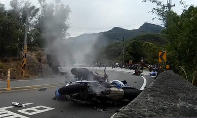 En Thaïlande, les motards aiment se rassembler chaque weekend sur les routes sinueuses à la recherche de plaisir et de sensations fortes. Problème, un deux-roues rate son virage, chute, glisse et fonce tel un projectile ...