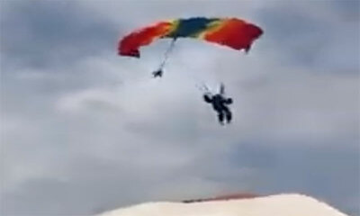 Lors d’un saut en parachute, le parachutiste doit atterrir dans une zone bien précise mais rate son approche. Il arrive beaucoup trop vite et manque de s’écraser contre plusieurs stands. Heureusement, il peut compter sur...