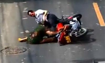 Le grand écart ! Wahoo ! A Gucheng, dans la province du Hubei en Chine, un couple est victime d’un accident de la route et se fait percuter par un véhicule. Le couple est éjecté de la moto et madame termine sur le sol av...