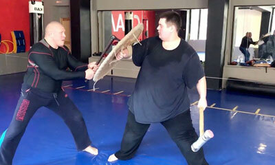 Lors d’un d'entraînement cardio dans le but de perdre du poids, Andrey Kynyazev se mesure au combattant MMA russe Maxim "Mad Max" Novoselov. Notre candidat à la perte de poids est équipé d'une masse et d'un bouclier, tan...