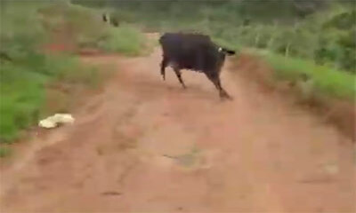 Un motard qui voulait tenter de faire une roue arrière sur un chemin de terre a été rappelé à l'ordre par une vache. Cette dernière n’a pas aimé de voir un tel comportement aussi dangereux et a décidé de faire justice el...