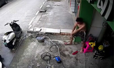 En Asie, un homme électrocuté arrive à se sauver lui-même. Alors qu’il se saisit d'un nettoyeur haute pression avec sa main gauche, il reçoit une violente décharge électrique et se retrouve tétanisé. Il va réussir à se j...