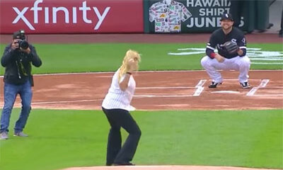 Rhoolala, je sens que certains mecs font se faire plaisir à tailler de la blonde. Avant le match de baseball opposant les White Sox de Chicago au Royals de Kansas City, Mary Ruich était invitée à lancer la première balle...