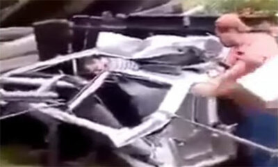 Les images vidéos chocs d’un accident d’un camion qui vient de s’encastrer dans un autre camion. Par miracle et peut-être grâce au cabine devenue beaucoup plus sécuritaire de nos jours, le chauffeur sort indemne de son a...