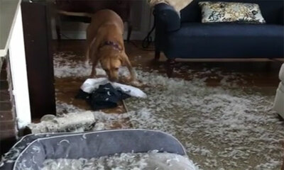 Un chien disperse plein de plumes d'oreiller dans toute la maison. Au États-Unis, alors qu'il rentrait du travail, un homme a eu la surprise de trouver sa maison envahi de plumes d'oreiller. Il va vite trouver le coupabl...