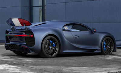 Pour célébrer son 110ème anniversaire, le constructeur automobile français a décidé de concevoir une Bugatti Chiron unique aux couleurs de la France ! Produite en seulement 20 exemplaires, la Bugatti Chiron "110 ans Buga...