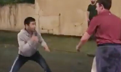 Lors d’une bagarre de rue, un des adversaires termine au sol après avoir reçu deux coups de poing. Mais la chose qui m’a frappé dans cette vidéo est le sourire qu’a la victime qui cogite dans les vapes allongé sur le bit...