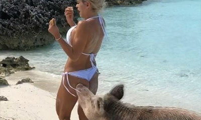 Michelle Lewin âgée de 32 ans a posté sur son compte instagram une vidéo dans laquelle un cochon vient lui bouffer les fesses. Alors qu’elle était en vacances sur l'île aux cochons aux Bahamas, la belle blonde a voulu jo...