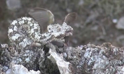 Mais WTF ! Ce serpent est le plus vicieux au monde ? Immobile sur un rocher, une vipère Pseudocerastes urarachnoides est filmée alors qu’elle attrape un oiseau grâce à un leurre placé au bout de son corps qui ressemble à...