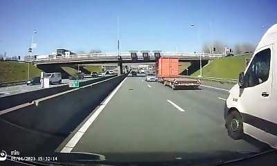 Un conducteur de Nissan a vécu un moment franchement stressant sur la A10, la rocade autour d’Amsterdam. Un petit camion a apparemment mal évalué la situation et a percuté sa voiture. Le chauffeur du camion ? Difficile d...