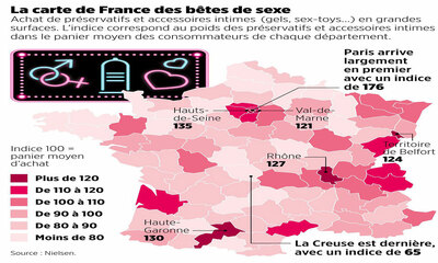 Ce 22 novembre, le magazine Le Point a sorti une carte de France dévoilant le nombre des ventes de préservatifs et de sextoys. Et l’on peut remarquer un fort contraste entre chaque départements. Comme toujours, il s'agit...