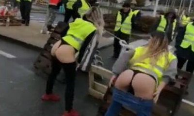 Au Leclerc de Pontchâteau, en Loire-Atlantique, un barrage de Gilets Jaunes a connu une petite montée de température avec deux femmes Gilets Jaunes qui ont montré leurs fesses. Un moyen de faire patienter certains automo...