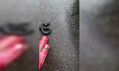 Une femme tente de retirer une serpent de la route, visiblement pour éviter qu’il ne se fasse écraser. Elle s’approche calmement, penche le bras avec prudence. Mais l’animal, pas super réceptif, réagit brusquement et se ...