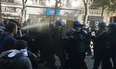 Ce mardi 9 octobre à Paris durant une manifestation pou la défense du "modèle social", des gendarmes ont été gazé par un manifestant équipé d’une gazeuse. Une vidéo amateur parue sur Facebook, montre des gendarmes mobile...
