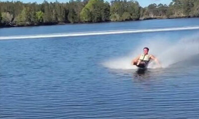 Le barefoot est une variation du ski nautique, comme le nom le suggère, on fait du ski nautique sans skis. Lors d’un session de ce sport nautique, un homme montre comment terminer et sortir de l’eau avec classe ! Plutôt ...