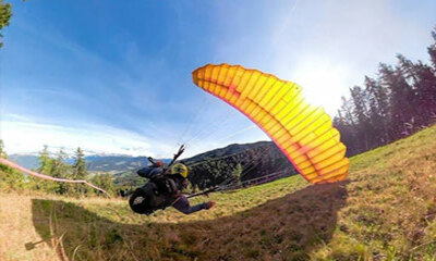 L’Autrichien Daniel Kofler a fixé une caméra GoPro Fusion dans son dos à l'aide d'une perche pour filmer son vol Speed Flying en rase-motte. Pour son plaisir, il s’est rendu dans la province autonome de Bolzano, en Itali...