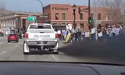 Un supporter de Trump a débarqué avec son pick-up mastoc dans une rue où quelques personnes manifestaient contre l’ancien président. Pas de violence, pas de mots : juste son véhicule de ne passerait certainement pas le c...