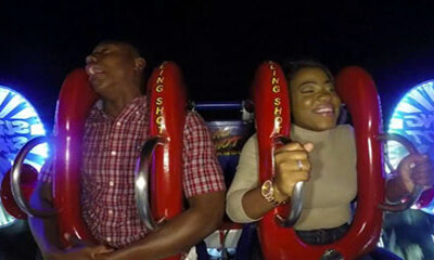 En compagnie de son épouse, cet homme fait un tour de slingshot dans un parc d’attractions. À bord de la boule propulsée en l'air à quelques dizaines de mètres de hauteur, l'homme va commencer par prendre peur puis crier...