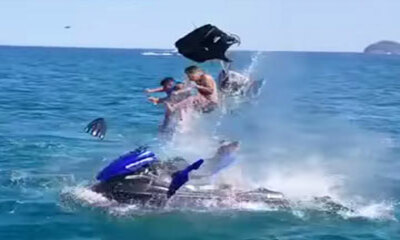 Lors de vacances au Maroc, une famille a loué un Jetski Yamaha FZR de 300 CH. Alors que le père et son fils sont dessus, le fiston accélère et le jetski se met à exploser éjectant les deux passagers dans les airs. htt...