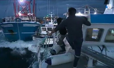 Le mardi 27 aout 2018, entre 40 et 50 pêcheurs normands ont pris la mer depuis Trouville-sur-Mer, Port-en-Bessin ou Ouistreham pour aller à la rencontre des pêcheurs anglais à la coquille Saint-Jacques au large de la bai...