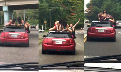 A Porto Rico, un conducteur avec sa femme filme une voiture à pétasse juste devant eux ou les passagers ont un drôle de comportement. En effet, deux femmes ont grimpés sur le toit de la Mini Austin pour exhiber leurs sei...