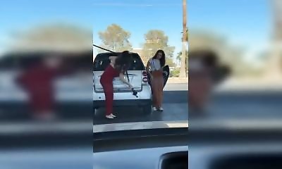 Les deux femmes dans la vidéo doivent simplement faire le plein. Facile ? Pas vraiment. Leur voiture a une plaque Carvana (entreprise américaine spécialisée dans la vente de voitures d’occasion), donc elles viennent prob...