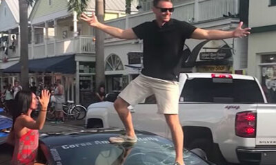 A Key West en Floride aux États-Unis, un rassemblement de belles voitures et de bolides est organisé dans les rues de la ville. Mais comme toujours, un kéké a voulu frimer en grimpant su le capot de sa voiture. Un indice...
