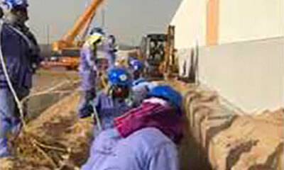 En Arabie Saoudite, un homme filme le travail d'équipe de trois ouvriers pendant la réalisation d'une tranchée sur un chantier. Mais les trois hommes se partagent une pelle dont un homme manipule l'outil tandis que ses d...