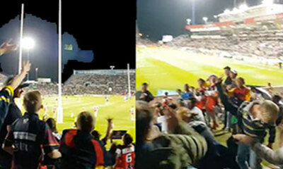 Lors d’un match de rugby en Australie entre l’équipe de North Queensland Cowboys et celle de St George Illawarra Dragon, un enfant a eu la chance de pouvoir tâter le ballon. Celui-ci s’est en effet pris un ballon en plei...