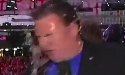 Ce mercredi soir juste après l’élimination de l’équipe d’Angleterre en Coupe du Monde, un supporter a vidé sa bière sur la tête d'un journaliste néo-zélandais qui était en direct. Bref, il était pas content ! https://...