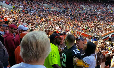 Lors d’un match de football US entre l’équipe des Steelers contre celle des Browns, le spectacle était aussi dans les gradins. Une bagarre a éclaté entre supporters adverses ou un fan des Browns a du être évacué des grad...