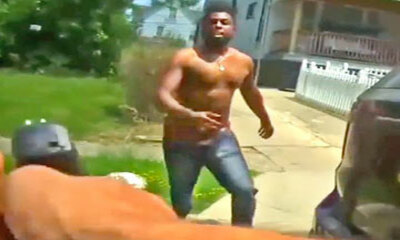 A Cleveland aux États-Unis, les policiers sont intervenus pour une agression sur une femme ainsi que pour des coups de feu tirés en l'air. La vidéo montre le suspect torse nu en train de sauter sur les agents lorsqu'ils ...