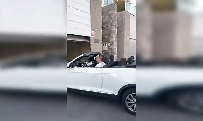 Le conducteur d’une voiture très chère veut sortir d'un garage en marche arrière. Heureusement, son ami l’aide en criant “vas-y, vas-y”. Il a promis de dire “stop” au bon moment. Mais son sens des distances est pas top.&...