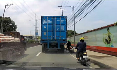 A Cainta, aux Philippines, un homme qui circulait à scooter a voulu passer entre un camion et un trottoir. Mais, celui-ci a chuté et en tombant au sol, le camion lui a roulé sur la tête. Mais par miracle et peut-être éga...