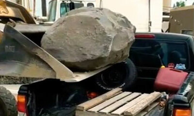 Aux États-Unis, Régis doit charger un énorme bloc de pierre à l’arrière d’un pick-up. La manœuvre est délicate et comme toujours notre ami Régis va aller à la rencontre d’ennuis. https://www.youtube.com/watch?v=lSbQGt...