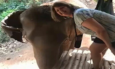 Lors d’un séjour en Thaïlande, une femme a voulu prendre une photo avec un éléphant. Mais ce dernier ne va pas se montrer très coopératif pour prendre La photo souvenir et va envoyer maman dans les airs. https://www.y...