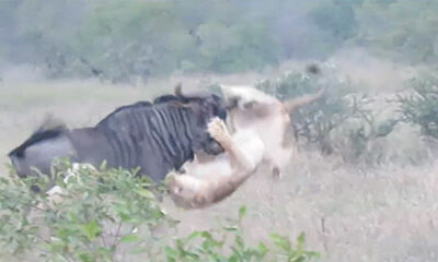 Les lions sont des prédateurs carnivores et de véritables chasseurs habiles, mais ces deux félins ont trouvé un ennemi de taille : un gnou qui compte bien se défendre pour sa survie ! https://www.youtube.com/watch?v=S...