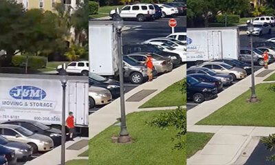 A Port Orange, Floride, États-Unis, un homme de sa fenêtre a entendu un bruit de ferrailles. Curieux, il s’est dirigé vers sa fenêtre pour apercevoir Régis et Kevin de J&M qui tentaient de faire garer leur camion de démé...