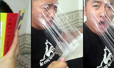 En chine, une jeune femme a voulu piéger son mec avec de la colle Glue. Cette dernière a aspergé une couverture de magazine et veut la montrer à son mec. Elle s’approche de lui et vient lui coller sur le visage du jeune ...