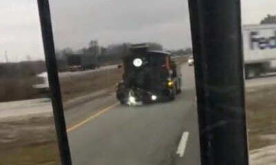 Alors qu’un chauffeur poids lourd circule sur l'autoroute I-65 près de Lafayette, dans l’Indiana, celui-ci a été doublé par une locomotive à vapeur. Il s'agit du véhicule customisé "Boilermaker Special 7", qui est la mas...