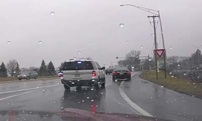 Aux États-Unis, un SUV prend son temps pour s’insérer sur une voir car il se retrouve face à une priorité. C’est alors qu’un conducteur impatient décidé de le doubler par la droite et va vite regrette son choix. https...