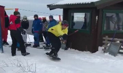 Un homme est mort de rire en voyant ses amis, tous des snowboardeurs débutants, chuter les uns après les autres. Pourquoi, car ces derniers essayent pour la première fois de leur vie le fameux tire-fesses à la station de...