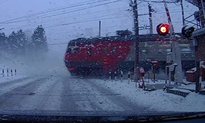 A Saint-Pétersbourg, Russie, un homme a filmé avec sa caméra embarquée une situation dangereuse à un passage à niveau. Alors que les barrières sont baissées et qu’un système bloque le passage, la sécurité se déverrouille...