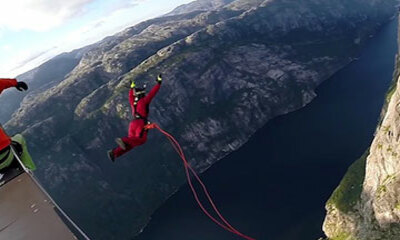 Regardez comment Carlos Munoz tente de battre le record du monde de saut à la corde statique. Le sportif a battu le record du monde de saut en plongeant du haut d’une montagne pour atteindre la chute de 424 mètres de hau...