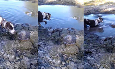 Aux États-Unis, un homme qui promène son chien tombe sur une tortue. Le canidé tout excité par sa découverte est subitement attiré par un bruit dans l’eau. Il pénètre la mare et d’un seul coup un alligator surgit et mord...
