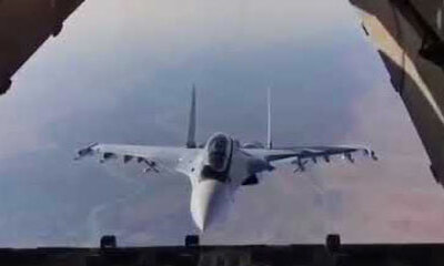 Juste après un largage au-dessus de la Syrie, un pilote de l’armée russe au commande d’un avion de combat Soukhoï Su-30 vient rendre visite à ses collègues. Pour cela, il s’est mis derrière l'avion-cargo pour faire un pe...