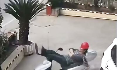 Un homme dort paisiblement sur son scooter. Soudain, un bruit juste à côté de lui le fait sursauter.