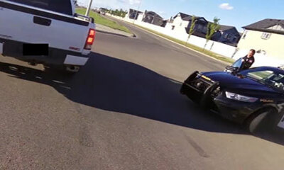 À Alberta au Canada, un motard qui vient de commettre une infraction au code de la route vient d’être pris en chasse par une voiture de police. Au lieu de s’arrêter, il va alors narguer les forces de l’ordre et prendre l...