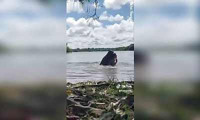 En Colombie, une femme nageait dans un lac de Ciénaga lorsqu'elle a été attaquée par un capybara. Une vidéo montre l'animal s'approcher, puis bondir sur son dos et sembler mordre sa tête. Ses cris résonnent alors qu'elle...