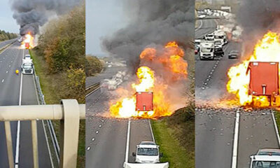 On sait tous que les aérosols de type spray à cheveux, pour le corps ou même les bombes de peintures peuvent s’enflammer facilement. Mais a quoi peut ressembler un camion de livraison qui contient exclusivement une carga...